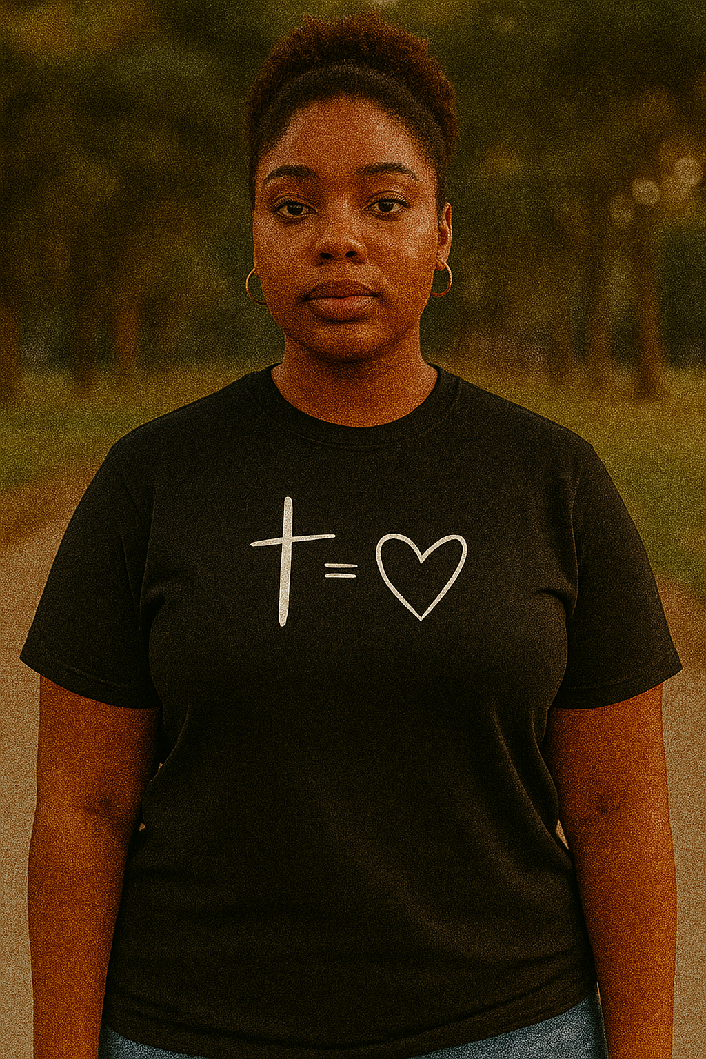 Affiche ton identité avec douceur et foi grâce à ce t-shirt noir minimaliste au message puissant.✨